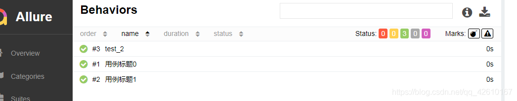 # -*- coding: utf-8 -*- # @Time : 2019/3/12 11:46 # @Author : zzt import allure import pytest @allure.title("用例标题0") @allure.description("这里是对test_0用例的一些详细说明") def test_0(): pass @allure.title("用例标题1") def test_1(): pass @allure.title("用例标题2") def test_2(): pass