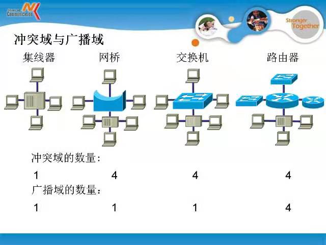 - Hubs(中继器)所有的设备都处于同一个冲突域;所有的设备否处于同一个广播域;设备共享相同的宽带,即10兆下两台设备各5M