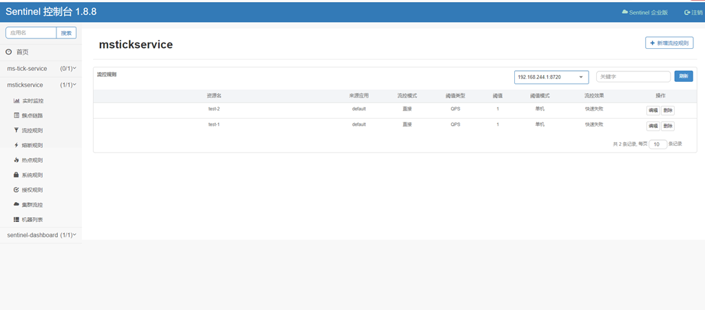 java -Dserver.port=8866 -Dcsp.sentinel.dashboard.server=localhost:8866 -Dproject.name=sentinel-dashboard -jar sentinel-dashboard.jar- 访问地址为 http://ip:8866