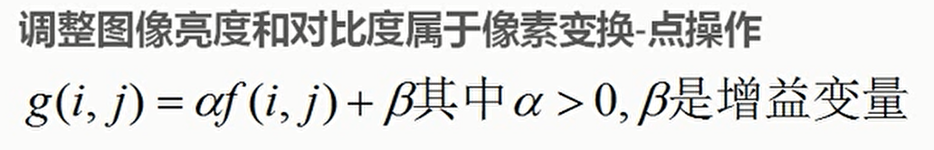 f(i, j)是原图的像素值,g(i, j)是调整后的像素值,α调整对比度,β调整亮度