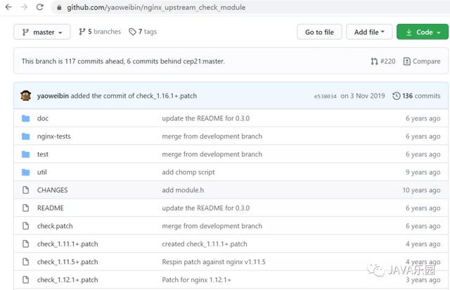 看下官网发现nginx_upstream_check_module-0.3.0标签是2014年打的比较老,查看master源码发现patch已经更新了很多,应该是README文件没有更新