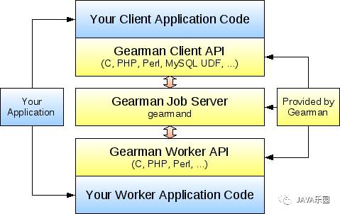 Gearman Client:可以理解为任务的收件员,比如我要在后台执行一个发送邮件的任务,可以在程序中调用一个Gearman Client并传入邮件的信息,然后就可以将执行结果立即展示给用户,而任务本身会慢慢在后台运行。