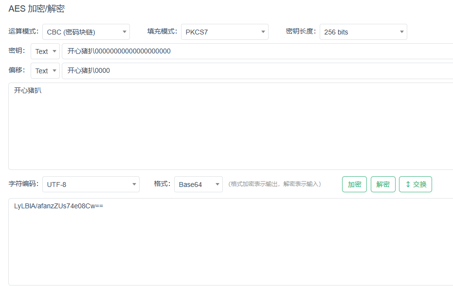 unsigned char iv [] = "开心猪扒0000" ; //偏移:16字节