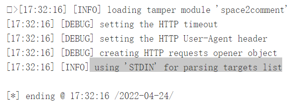 解决:通过跟踪断点信息,发现有个config的参数conf.stdinPipe的值和直接在shell中执行命令行的值不一致,所以在sqlmap的源码的lib/core/option.py 中的init()方法中设置conf.stdinPipe=None后解决了此问题