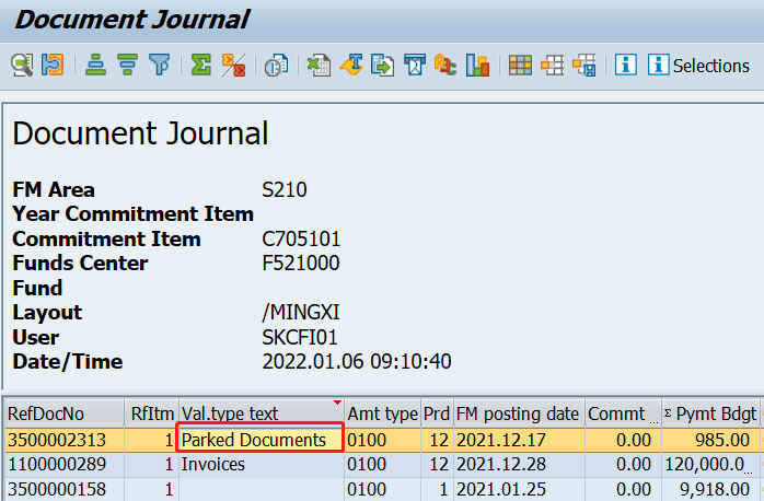FM 预算报表 FMRP_RW_BUDCON - Overview of Budget Consumption 中实际行项目