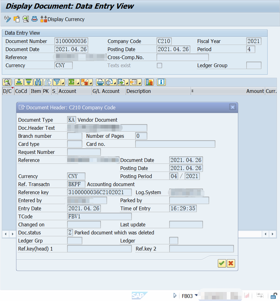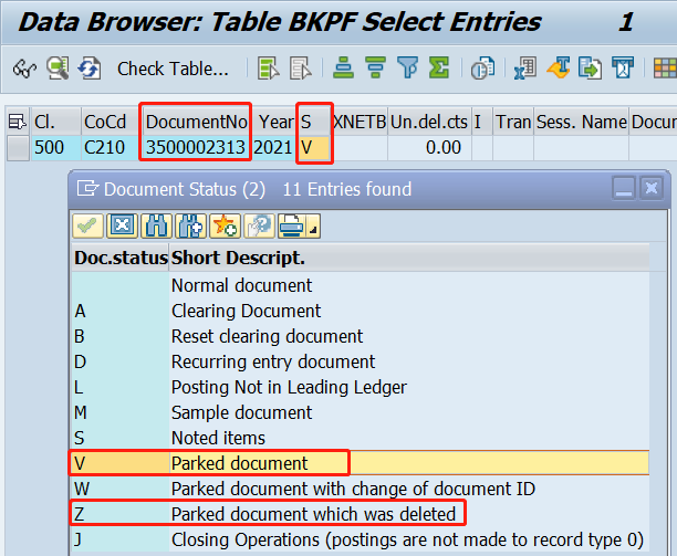 9. 预制凭证删除后,凭证抬头后台表S字段的值为“Z”