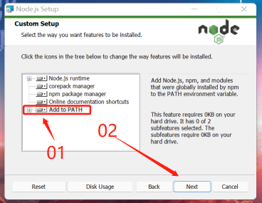 2.4 点击新建,将软件的安装路径复制到左侧路径栏中,默认是C:\Program Files\nodejs\,如安装时更改了路径,就填改后的新路径,新增后就一步一步确认即可.