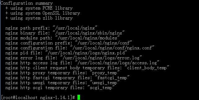 [root@localhost nginx-1.14.1]# ./configure --prefix=/usr/local/nginx --with-http_ssl_module