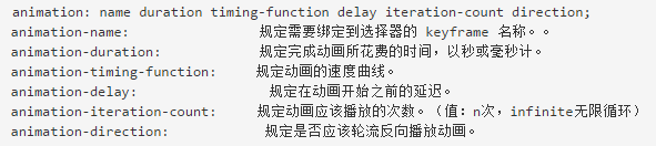 把动画绑定到元素上,我们可以使用animation属性。animation属性有以下这些: