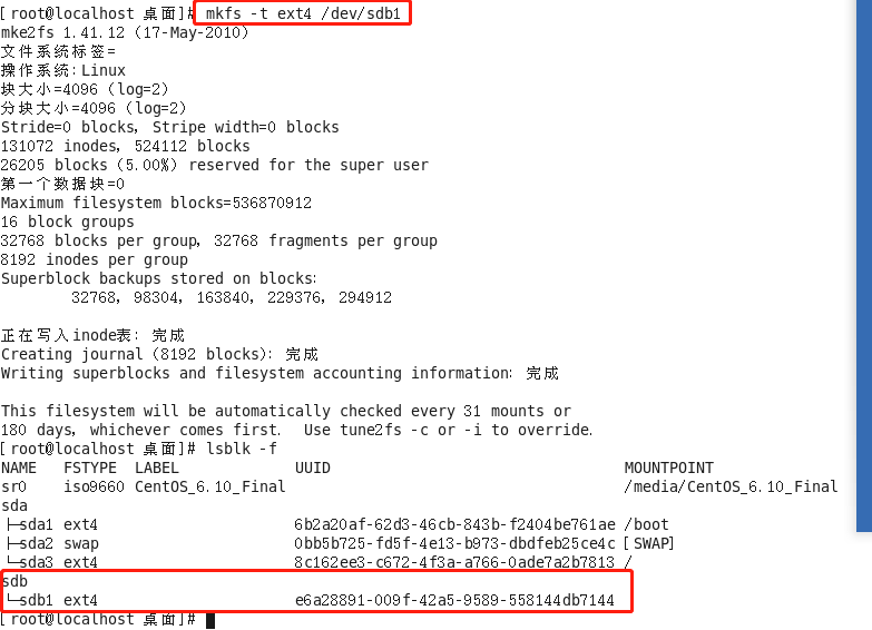 3)格式化 mkfs -t ext4 /dev/sdb1