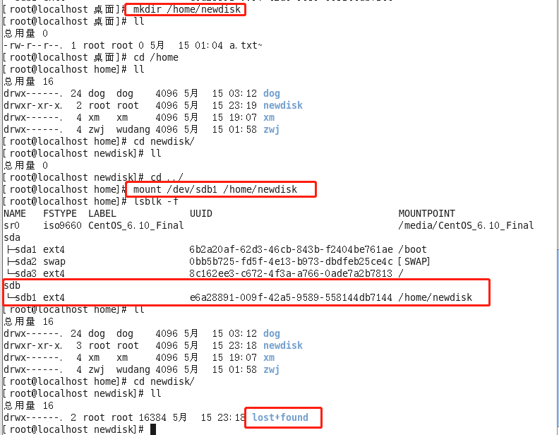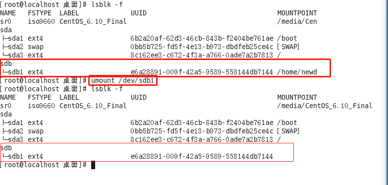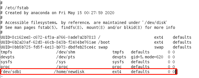 6)卸载 umount /dev/sdb1 或者 umount /home/newdisk