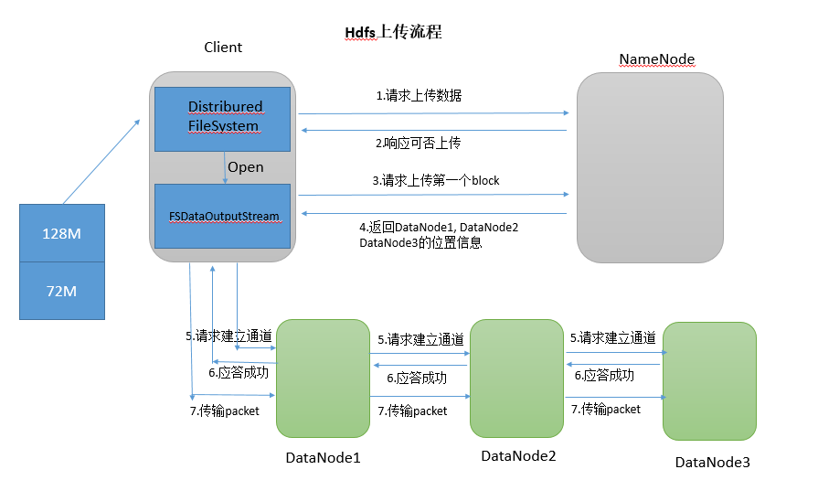 客户端访问NameNode请求上传文件;