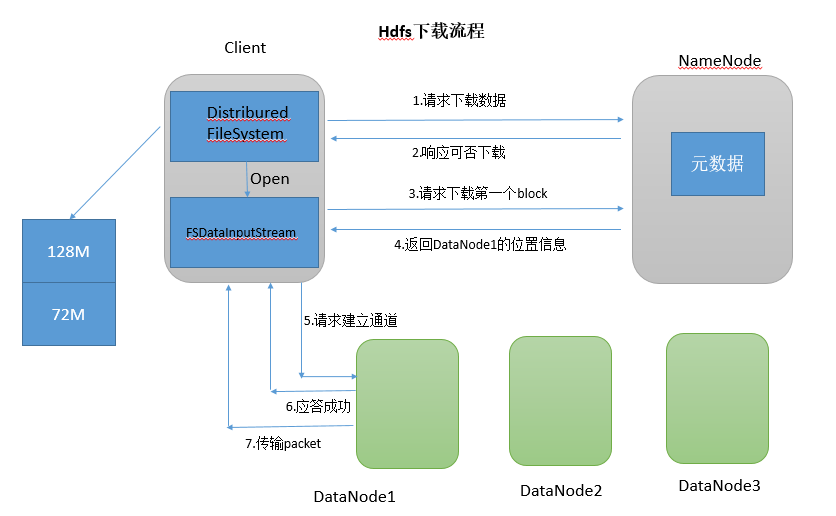 客户端通过向NameNode请求下载文件;