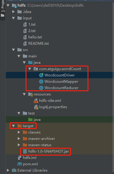 (4)将程序打成jar包,然后拷贝到hadoop集群中。