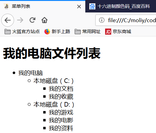 属性:type:实心圆disc(默认) 空心圆circle 实心方块square