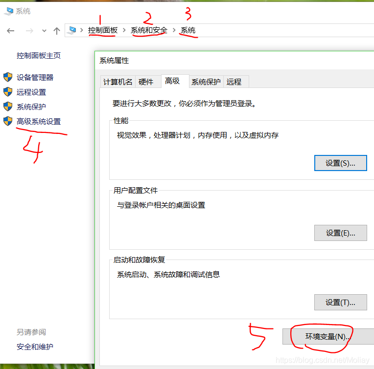 控制面板->系统和安全->系统->高级系统设置->环境变量