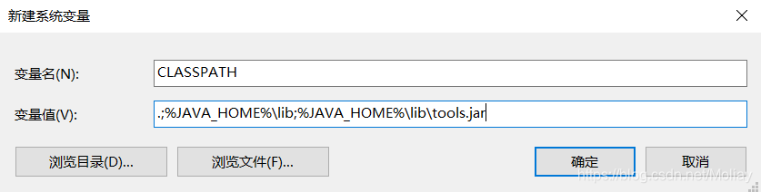 变量值: .;%JAVA_HOME%\lib;%JAVA_HOME%\lib\tools.jar