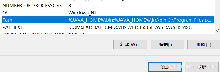 而后是最后一步,找到Path变量,加这东西: %JAVA_HOME%\bin;%JAVA_HOME%\jre\bin;