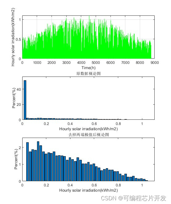 xlabel('Time(h)');ylabel('Hourly solar irradiation(kWh/m2)');