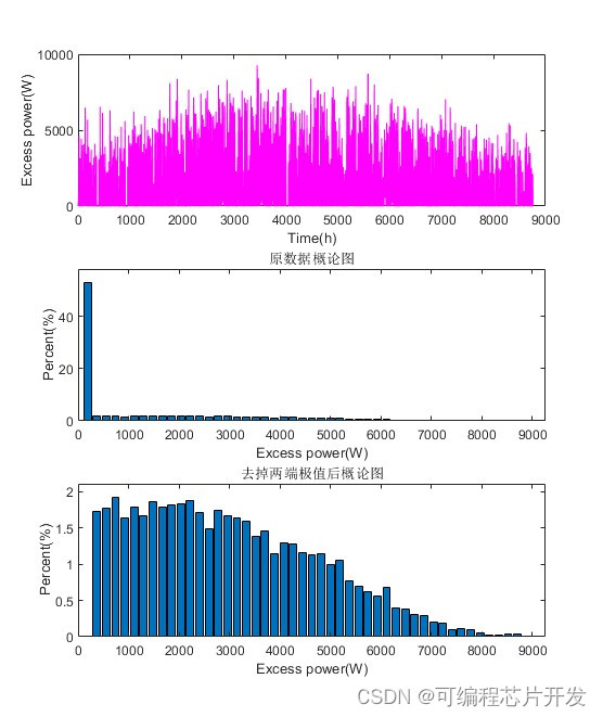 xlabel('Time(h)');ylabel('Excess power(W)');