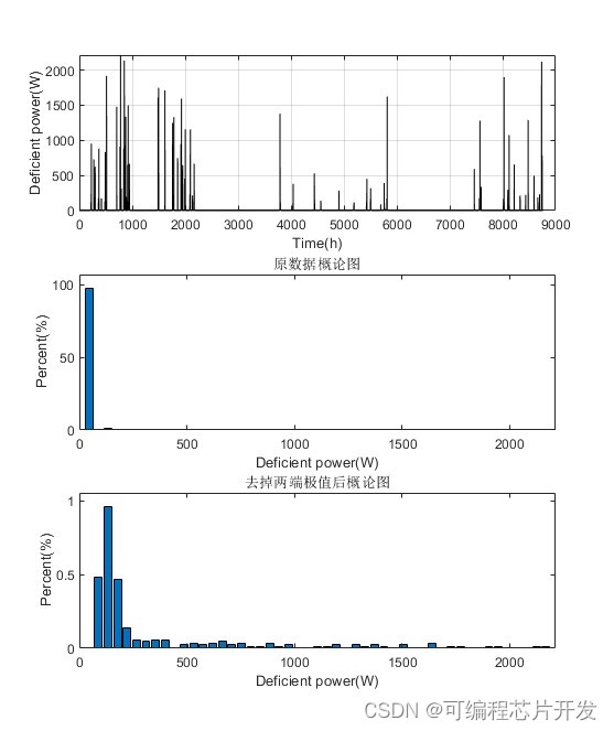 xlabel('Time(h)');ylabel('Deficient power(W)');