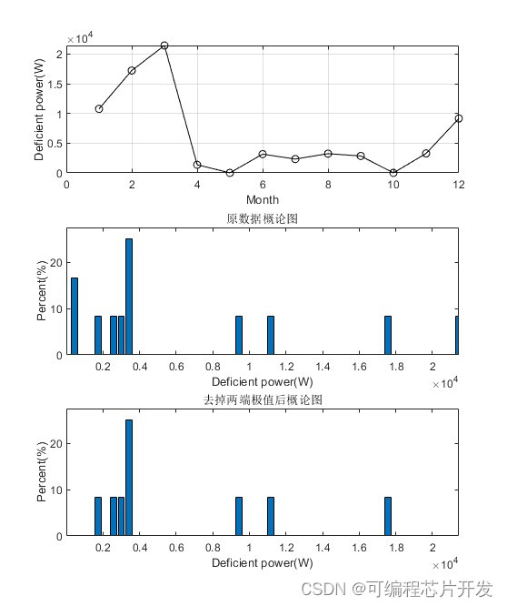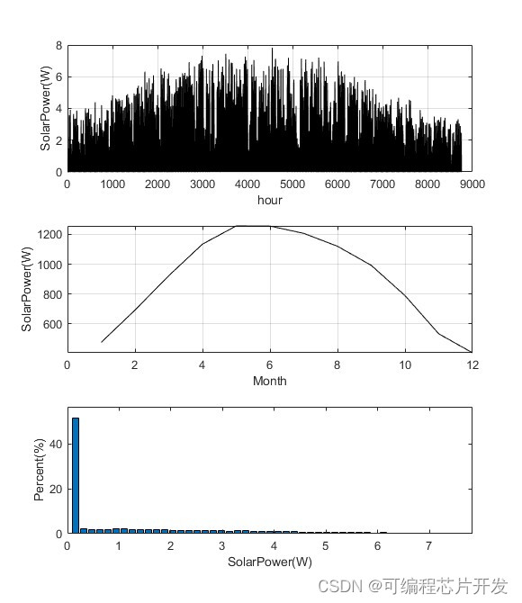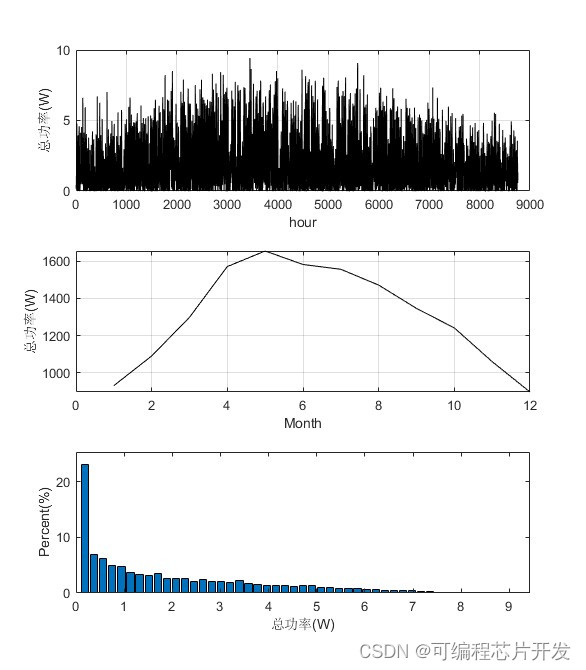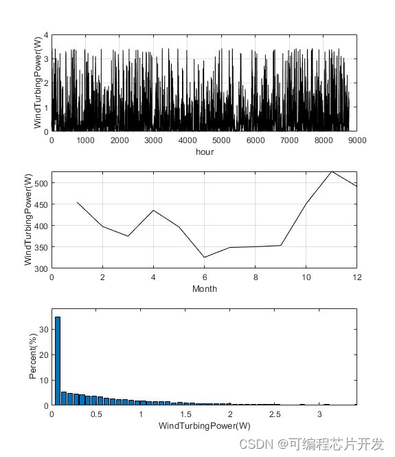 xlabel('Month');ylabel('WindTurbingPower(W)');