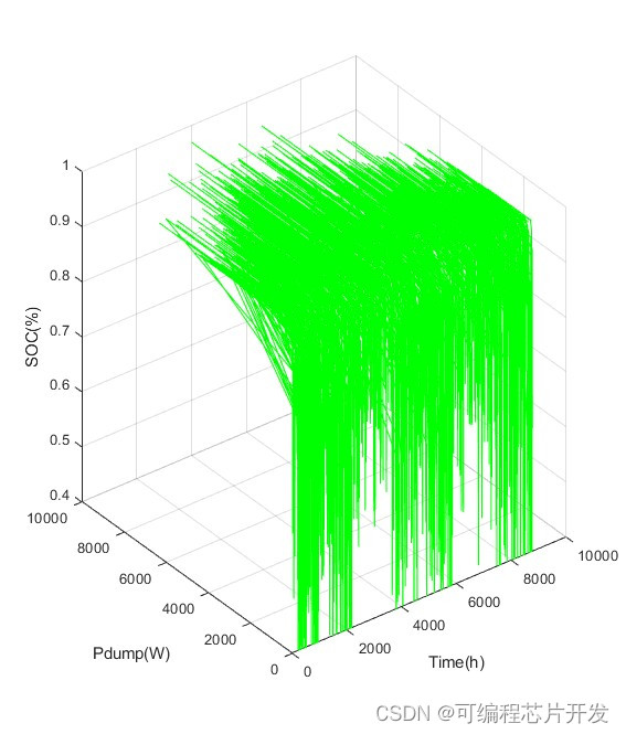 xlabel('Time(h)');ylabel('Pdump(W)');zlabel('SOC(%)');