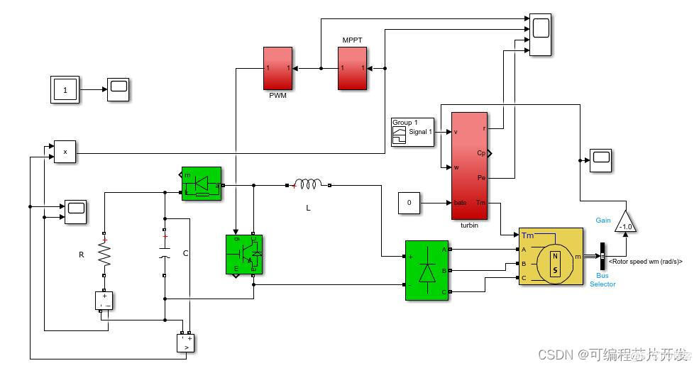 在系统中,涡轮机输出功率与点击转速之间存在特定关系,通常呈现为一个驼峰曲线。MPPT算法的目标是实时调整涡轮机的工作状态,使其在任何转速下都能获取最大的可利用功率。