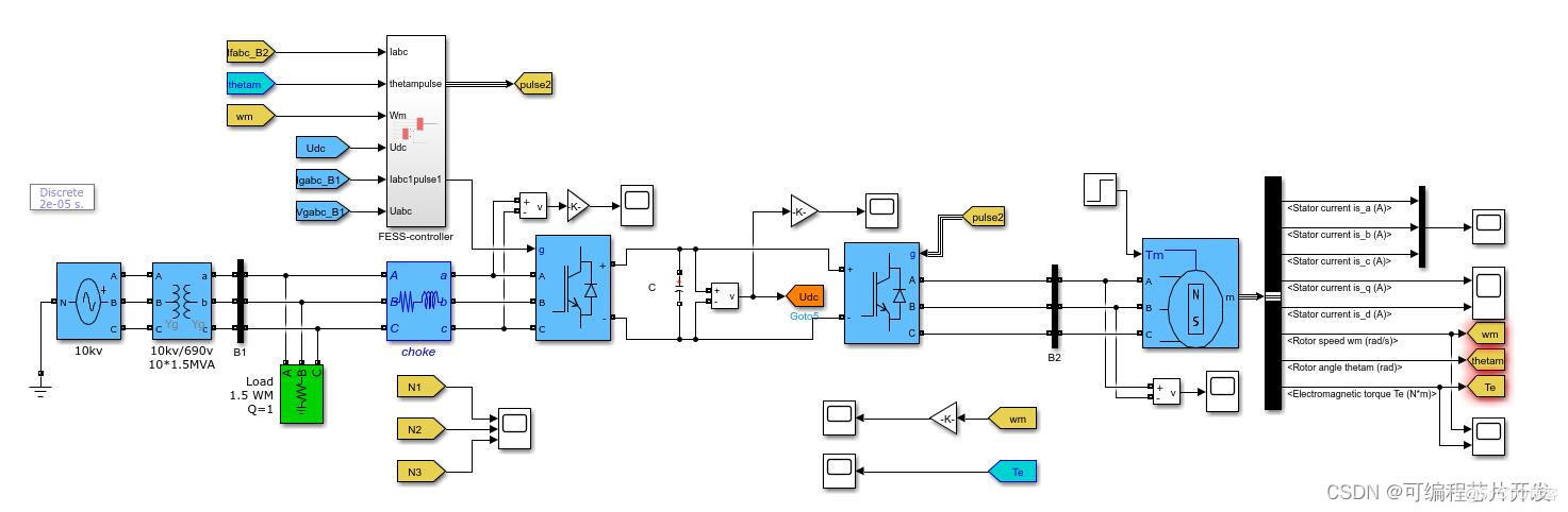 SVPWM在飞轮控制系统中的应用,不仅提高了能量转换效率,减少了谐波含量,而且使得电机运行更加平稳,控制精度更高。这对于维持飞轮的高速稳定旋转、快速响应负载变化至关重要。此外,SVPWM的灵活性也允许系统根据储能需求动态调整,实现最优的能量管理和调度,是提高飞轮储能系统整体性能的关键技术之一。