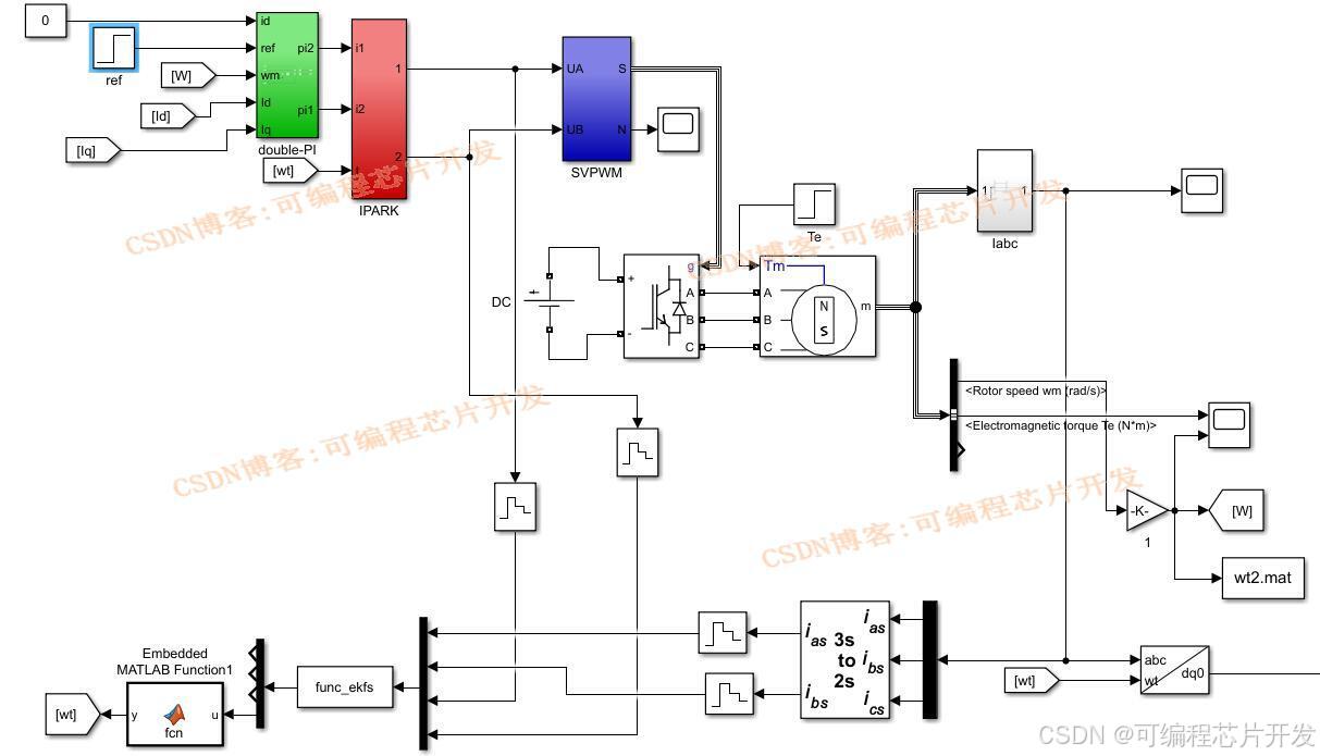基于双PI+EKF扩展卡尔曼滤波的PMSM速度控制simulink建模与仿真