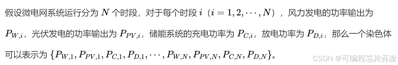 在实际开发过程中,将问题的解空间转换为遗传算法可以处理的染色体编码空间。在风光储微电网削峰填谷能量管理系统中,染色体可以表示为各时段风力发电、光伏发电、储能系统的功率输出以及充放电状态等决策变量的组合。