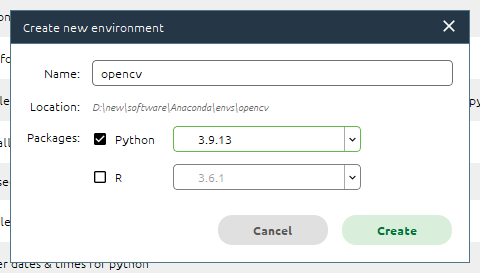 在弹出的Create窗口填写新环境的名字和对应的python版本。
