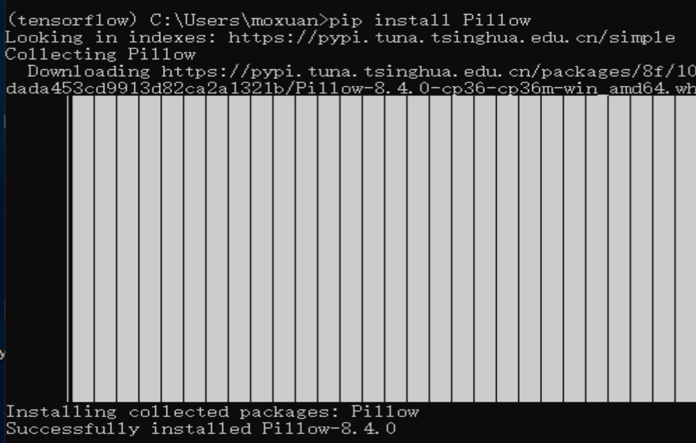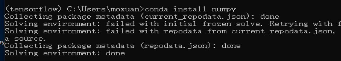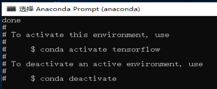 安装完成后会提示激活这个环境,使用conda activate tensorflow(环境名字)。