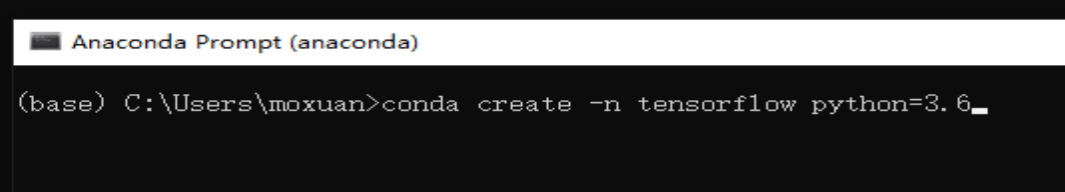 打开Anaconda Prompt,输入conda create -n tensorflow python=3.6(创建一个名为tensorflow的环境,安装python3.6版本)。