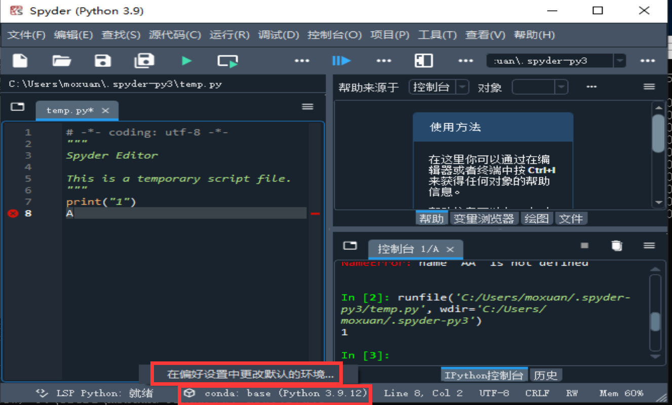 在IDE中,我们可以通过点击下方的python环境,在弹出的选项中更换运行的python版本。