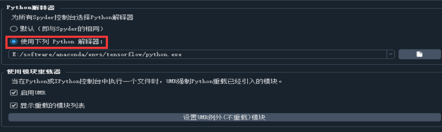 比如tensorflow环境,则路径为anaconda/envs/tensorflow/python.exe。