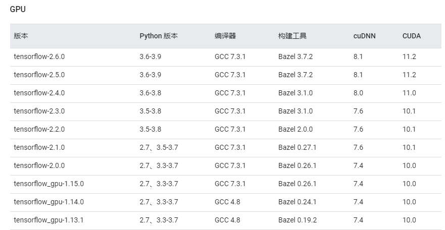 首先进入tensorflow官网:https://www.tensorflow.org/install/source?hl=zh-cn#tested_source_configurations