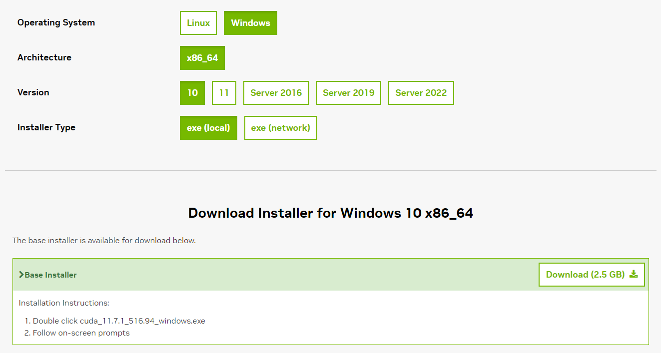 确认好CUDA版本后,选择对应的安装包下载:https://developer.nvidia.com/cuda-toolkit-archive