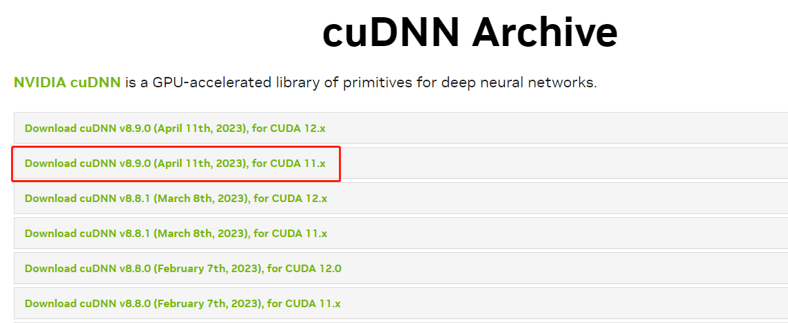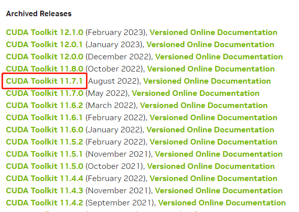 如果没有对应的CUDA版本,安装前一个版本即可,比如CUDA版本是11.9.0,则下载11.8.0