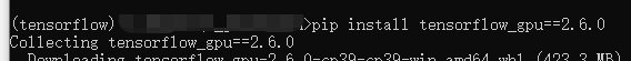我们可以使用conda来安装,也可以使用自带的pip来安装,输入pip install tensorflow_gpu==2.6.0来指定tensorflow版本