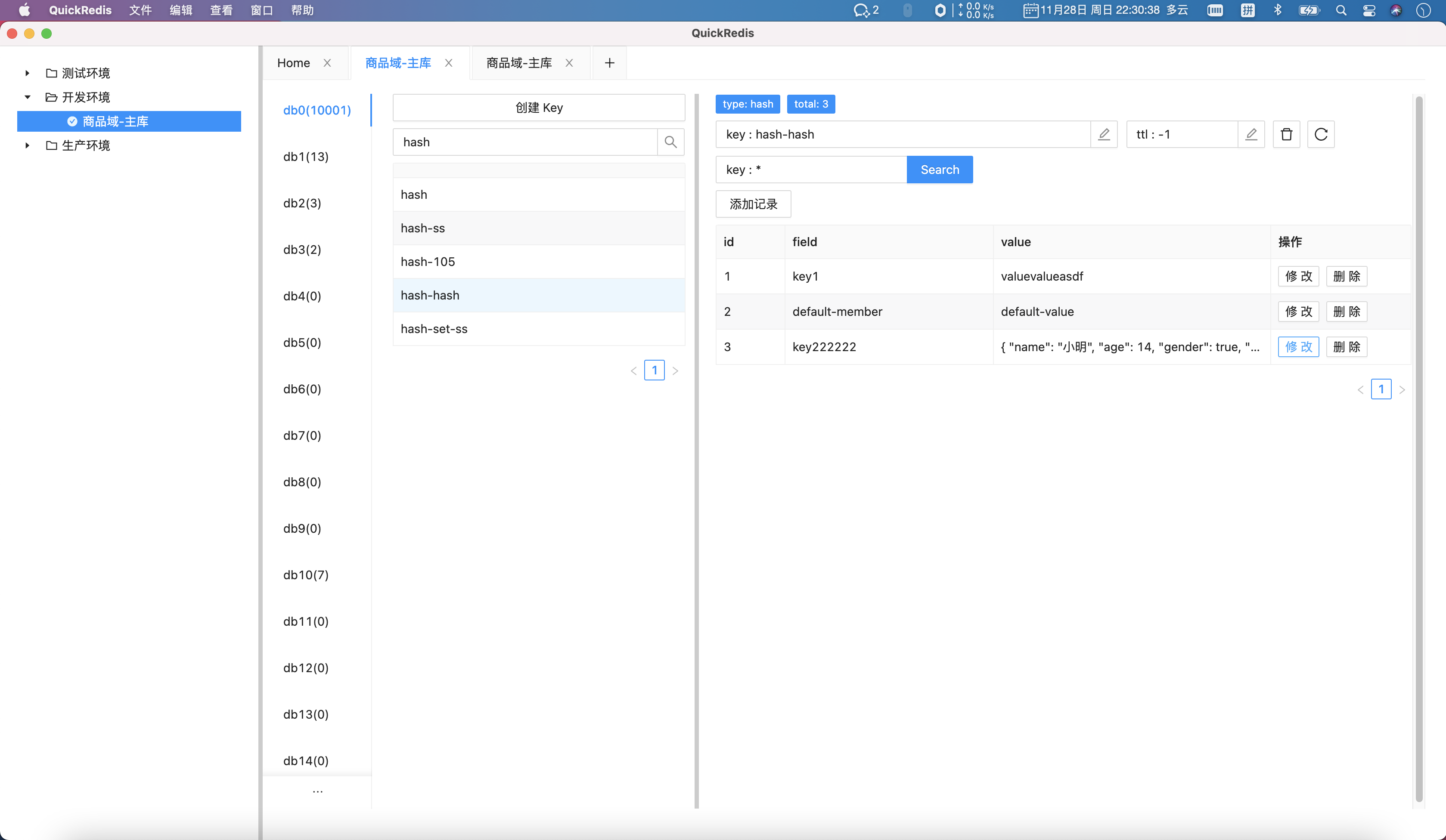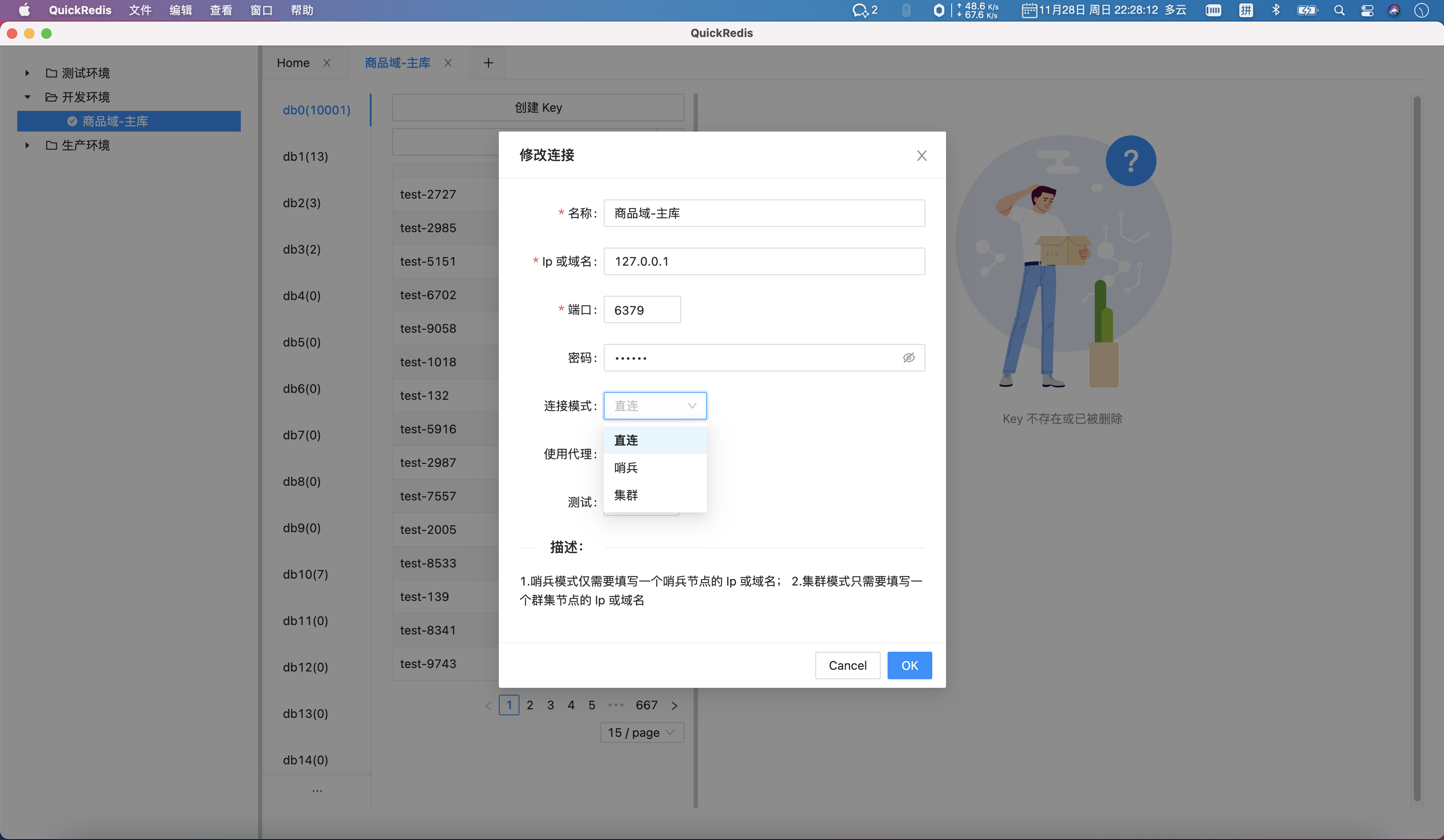 QuickRedis 是一款 永久免费 的 Redis 可视化管理工具。它支持直连、哨兵、集群模式,支持亿万数量级的 key,还有令人兴奋的 UI。QuickRedis 支持 Windows 、 Mac OS X 和 Linux 下运行。QuickRedis 是一个效率工具,当别人在努力敲命令的时候,而你已经在喝茶。
