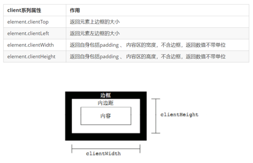 client 翻译过来就是客户端,我们使用 client 系列的相关属性来获取元素可视区的相关信息。通过 client