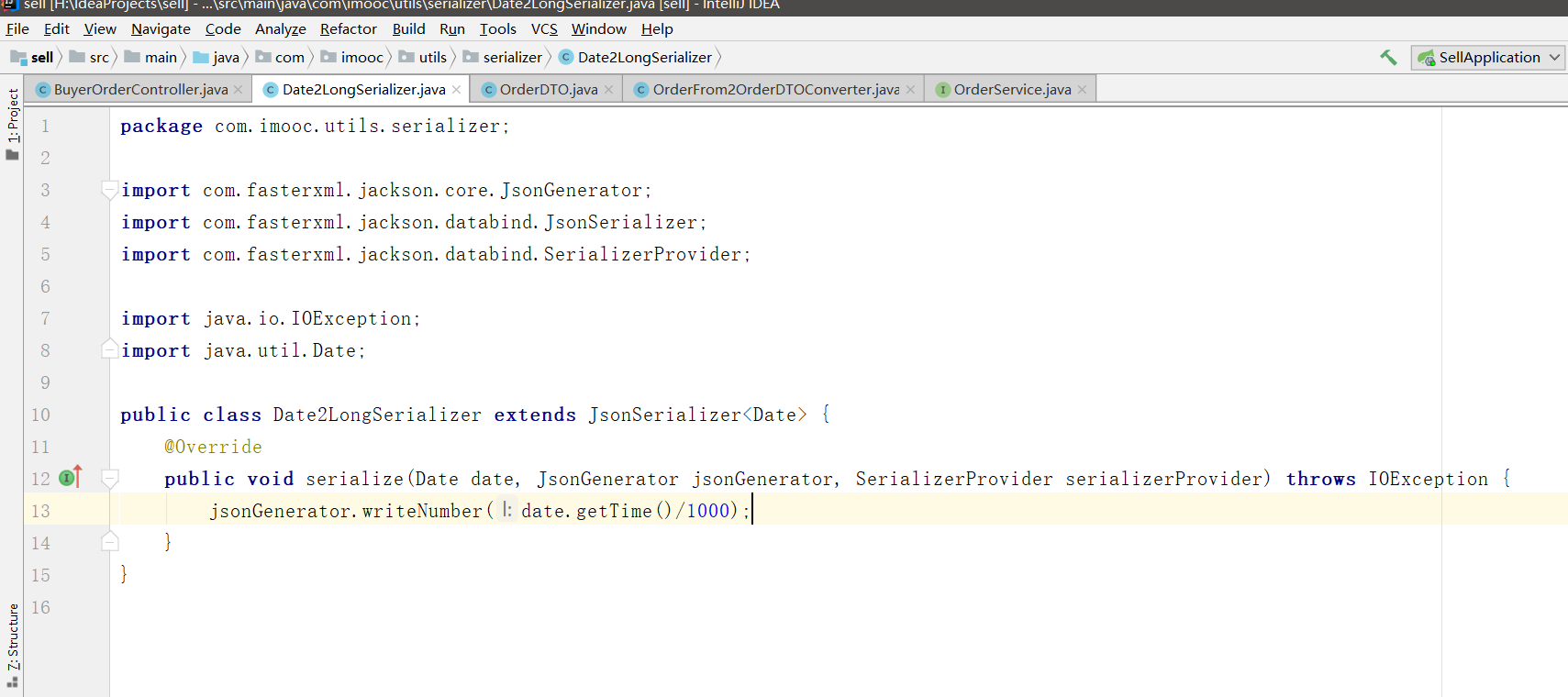 时间属性注解@JsonSerialize(using = Date2LongSerializer.class)