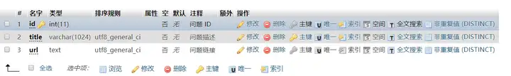 如上示例,是我创建的数据库 TopicDB 和数据表 QuestionsTable 。