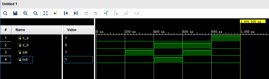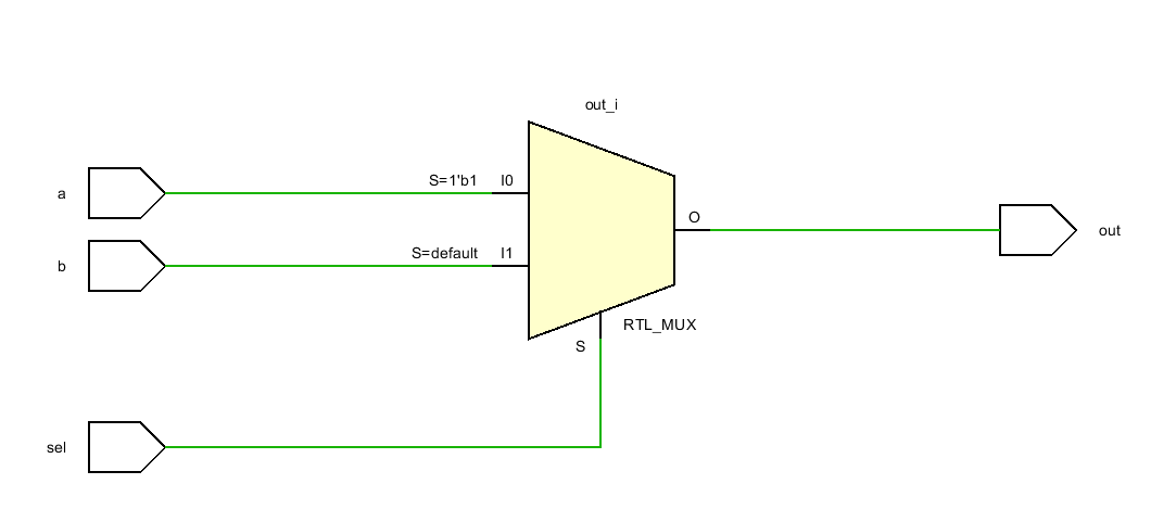 //当控制信号sel为低电平时(sel=1)输出out与输入a相同,否则与b相同