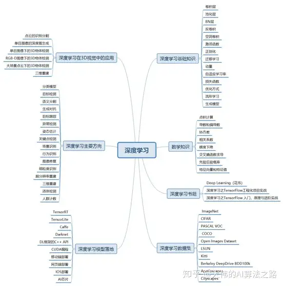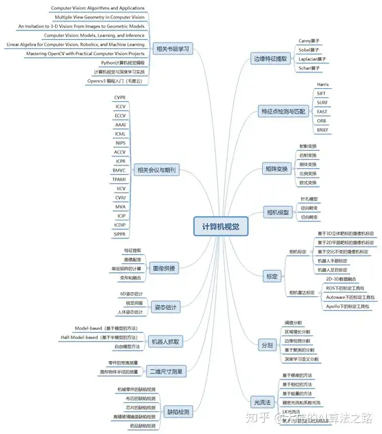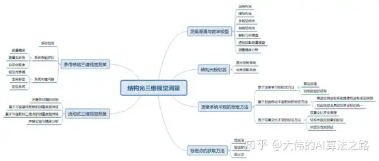 基于3D视觉领域缺少完整的知识路线,我和几个朋友共同完成了3D视觉技术学习路线总结,并以思维导图的形式呈现出来,主要包括0~16个小结,其中每个小结代表特定区域的知识点。学习路线的总结,需要较宽的知识面,由于自身有一定的知识盲区,若有缺漏之处还望指出,后续将会不断更新维护该学习路线~
