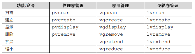第一步:让新添加的两块硬盘设备支持 LVM 技术。 [root@linuxprobe~]# pvcreate /dev/sdb /dev/sdc Physical volume "/dev/sdb" successfully created. Physical volume "/dev/sdc" successfully created 第二步:把两块硬盘设备加入到 storage 卷组中,然后查看卷组的状态。 [root@linuxprobe~]# vgcreate storage /dev/sdb /dev/sdc Volume group "storage" successfully created [root@linuxprobe~]# vgdisplay 第三步切割出一个约为 150MB 的逻辑卷设备。 这里需要注意切割单位的问题。在对逻辑卷进行切割时有两种计量单位。第一种是以容 量为单位,所使用的参数为-L。例如,使用-L 150M 生成一个大小为 150MB 的逻辑卷。另外 一种是以基本单元的个数为单位,所使用的参数为-l。每个基本单元的大小默认为 4MB。例 如,使用-l 37 可以生成一个大小为 37×4MB=148MB 的逻辑卷。 [root@linuxprobe~]# lvcreate -n vo -l 37 storage Logical volume "vo" created. [root@linuxprobe~]# lvdisplay 第四步:把生成好的逻辑卷进行格式化,然后挂载使用。 Linux 系统会把 LVM 中的逻辑卷设备存放在/dev 设备目录中(实际上就是个快捷方式), 同时会以卷组的名称来建立一个目录,其中保存了逻辑卷的设备映射文件(即/dev/卷组名称/ 逻辑卷名称)。 [root@linuxprobe ~]# mkfs.ext4 /dev/storage/vo [root@linuxprobe~]# mkdir /linuxprobe [root@linuxprobe~]# mount /dev/storage/vo /linuxprobe 永久生效 [root@linuxprobe~]# echo "/dev/storage/vo /linuxprobe ext4 defaults 0 0" >> /etc/fstab [root@linuxprobe~]# cat /etc/fstab