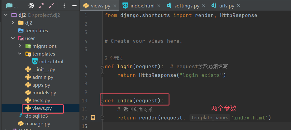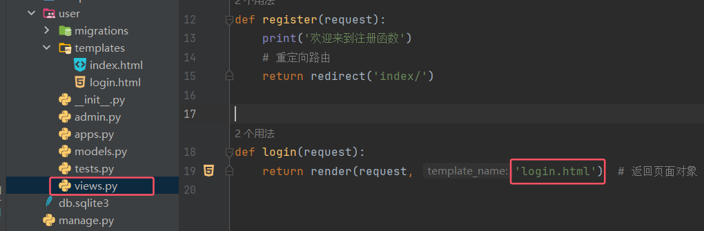template_name:当前需要渲染的模板文件的名字,放在 templates 文件夹里面的