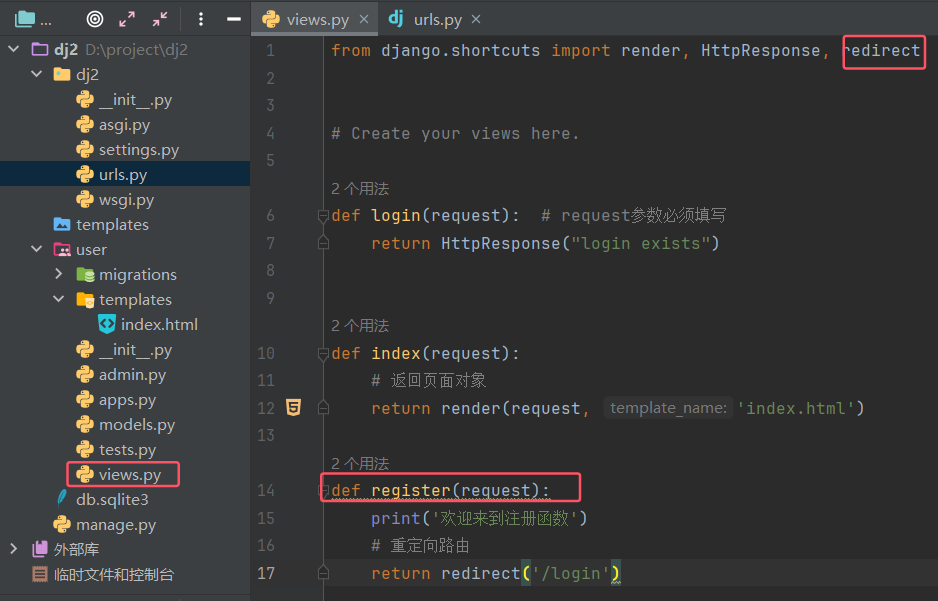 如果简写成/index/会将127.0.0.1:8080/register重定向到127.0.0.1:8080/index上