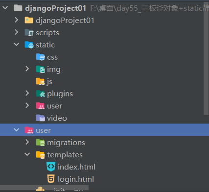 通常,静态文件(如CSS、JavaScript、图片img、视频video、bootstrap框架等)需要手动创建一个static文件夹来存放,这个文件夹可以放在项目的根目录下。